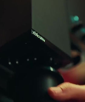 After pouring beans into the grinder, place the empty xPod on the dock and press the button to start the brewing process.